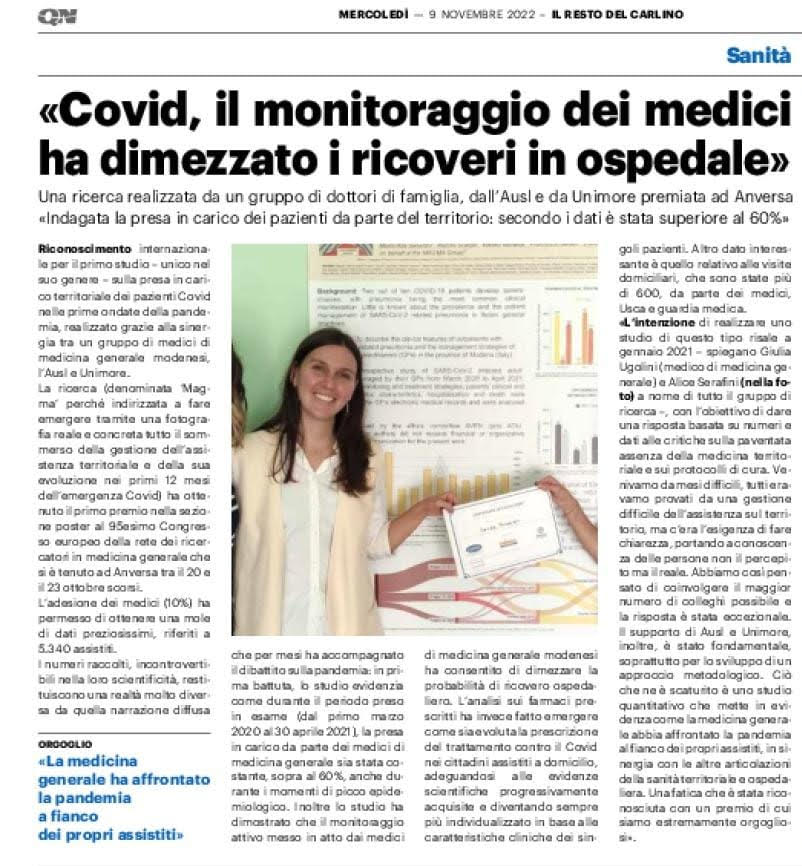 EGPRN Poster Prize for the 95th EGPRN Meeting in Antwerp, Belgium goes to COVID-19 pneumonia in the outpatient setting in Italy: a population-based observational study by the authors Alice Serafini, Giulia Ugolini, Lucia Palandri, Peter Konstantin Kurotschka, Marina Scarpa, Maria Stella Padula, Davide Fornaciari, Martina Lavenia, Matteo Morandi, Francesco Bellelli, Maria Rita Sabattini, Chiara Giansante, Elena Righi, Silvia Riccomi.